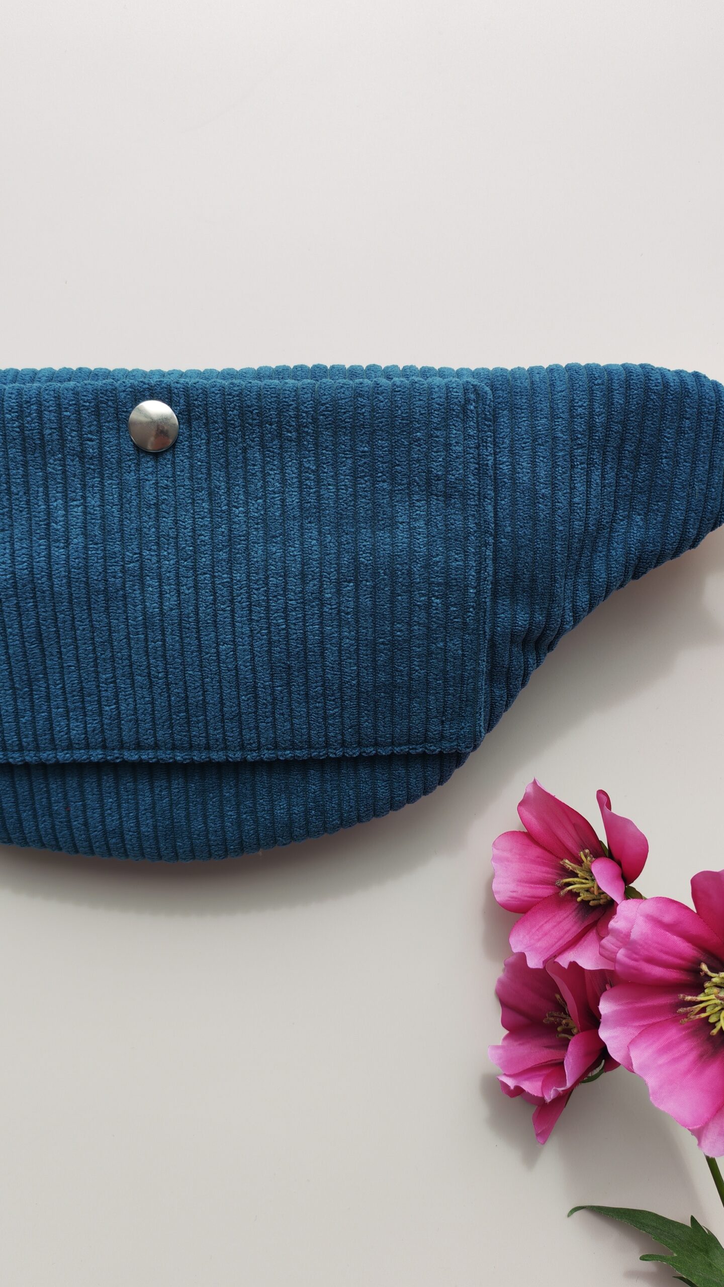 Sac banane en velours Bleu Paon – Pratique et intemporel