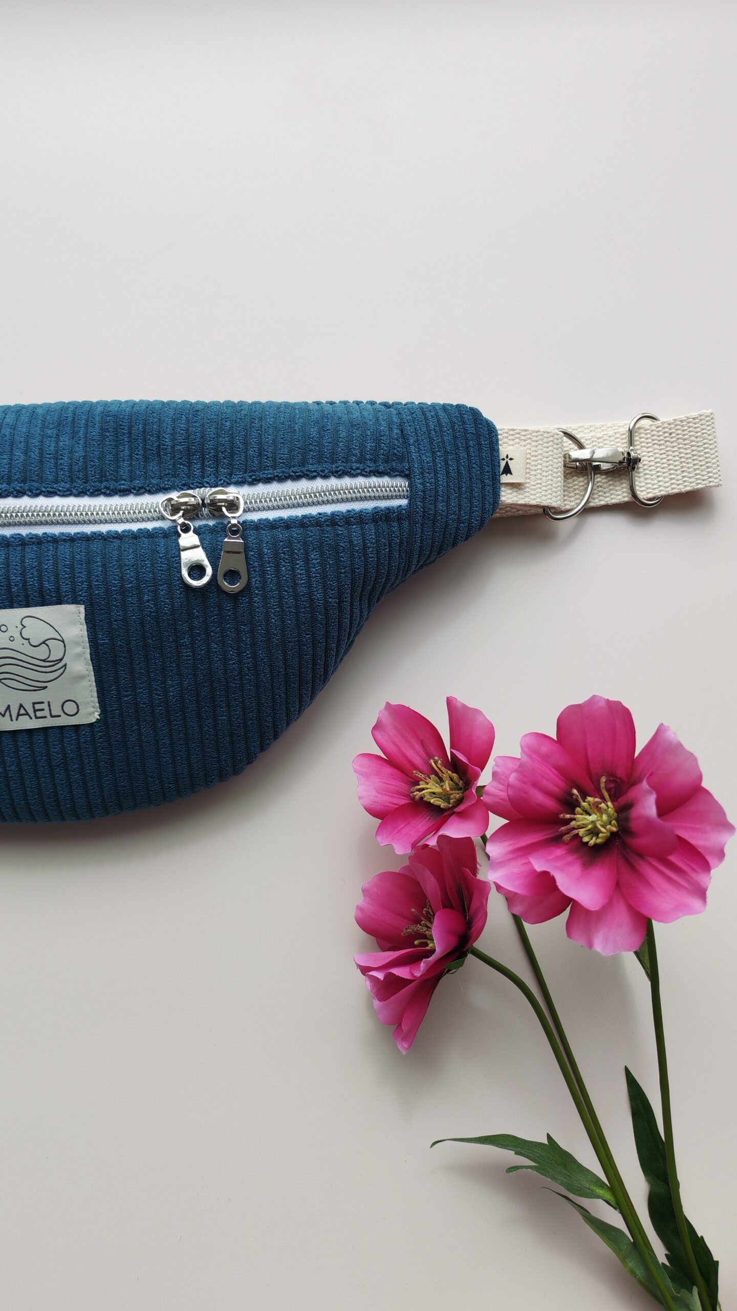 Grâce à sa sangle réglable de couleur écru, il s’adapte à toutes les morphologies et se porte aussi bien à la taille qu’en bandoulière.